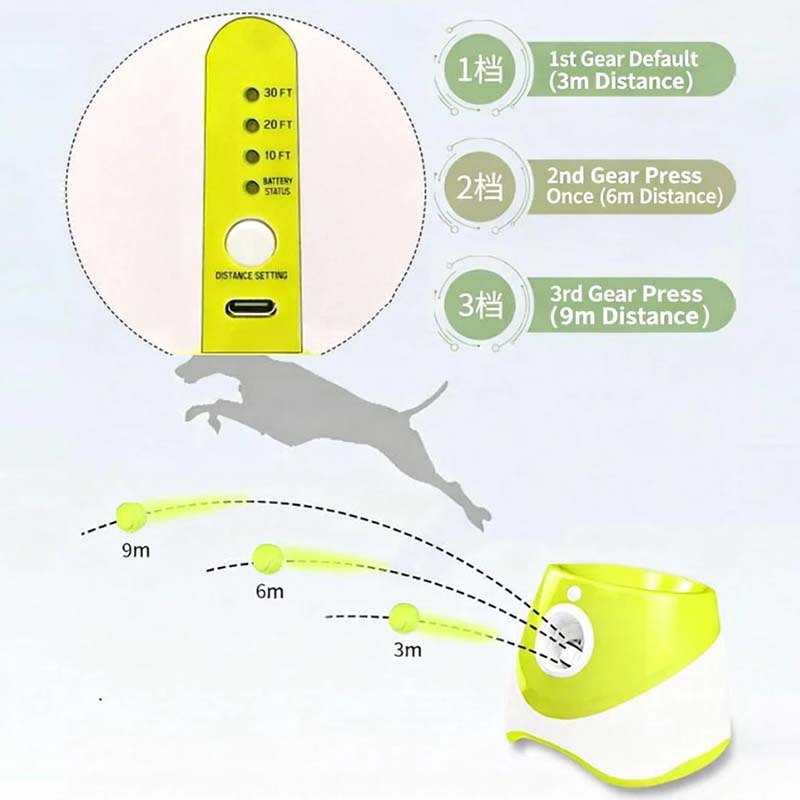 يُتيح جهاز الإطلاق ثلاثة أوضاع قابلة للتعديل لمسافة الارتداد لتناسب المساحات المختلفة وأحجام الكلاب المتنوعة. مع ما يصل إلى 4-5 ساعات من اللعب بشحنة كاملة عبر منفذ USB Type-C، يوفر الجهاز ترفيهاً موثوقاً به دون الحاجة إلى استخدام اليدين حتى في غيابك. ما عليك سوى وضع كرات التنس عالية المرونة المرفقة، واختيار الوضع المفضل لديك، ودع كلبك يستمتع باللعب النشط والمستقل!