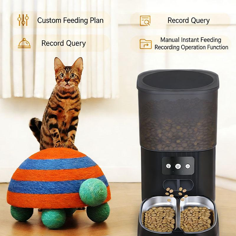 قم بجدولة الوجبات بدقة والتحكم في أحجام الحصص للحفاظ على النظام الغذائي الصحي لحيوانك الأليف تلقائيًا.